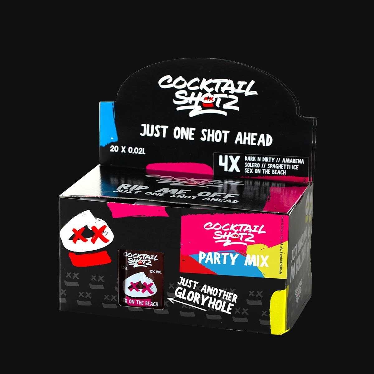 Likör mit Aroma und Farbstoff (E102). Produkt enthält Milcherzeugnisse.
