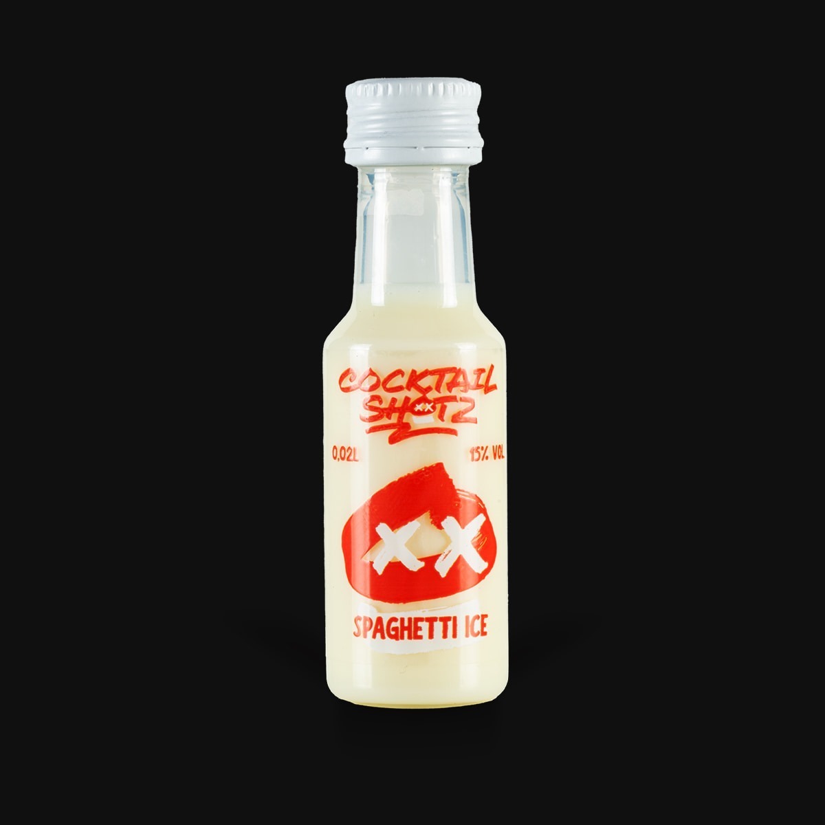 Likör mit Aroma und Farbstoff (E102). Produkt enthält Milcherzeugnisse.